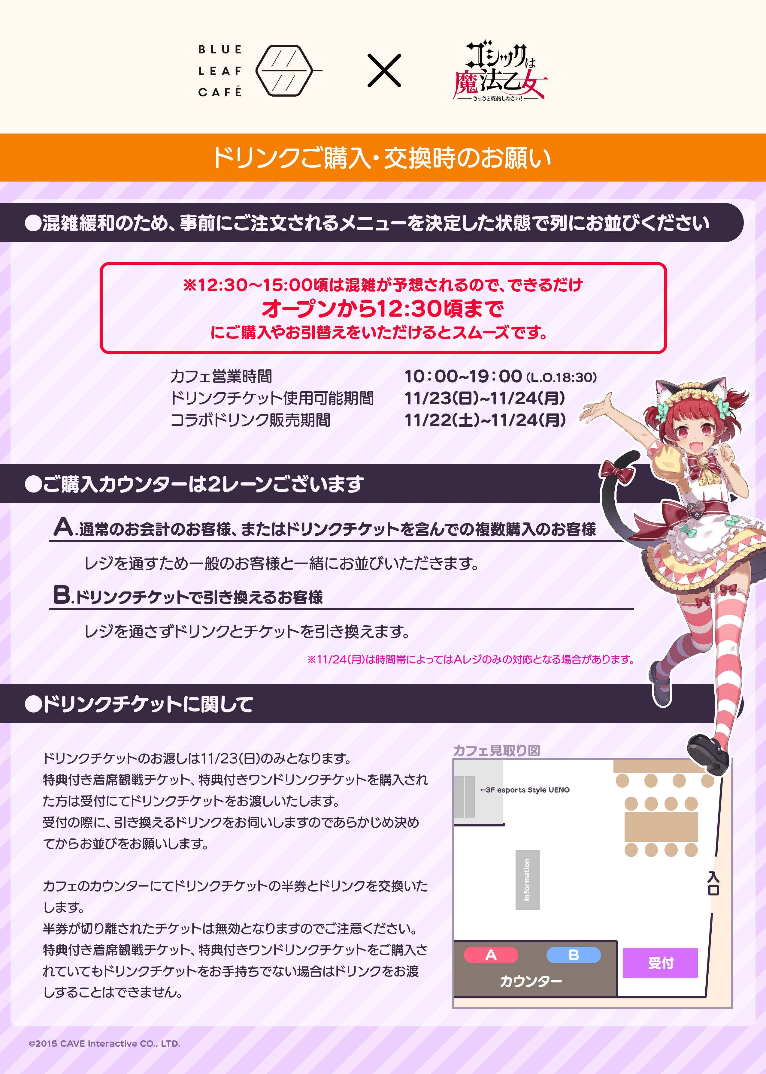 第3回リアルスコア大会会場「esports Style UENO」下のカフェ「BLUE LEAF CAFÉ (上野)」にて属性をイメージしたオリジナルコラボドリンクを販売!コラボドリンク1杯ごとにオリジナルデザインコースターをランダムで1枚プレゼント!